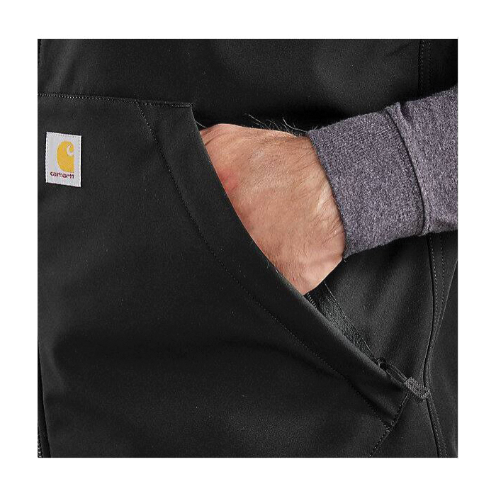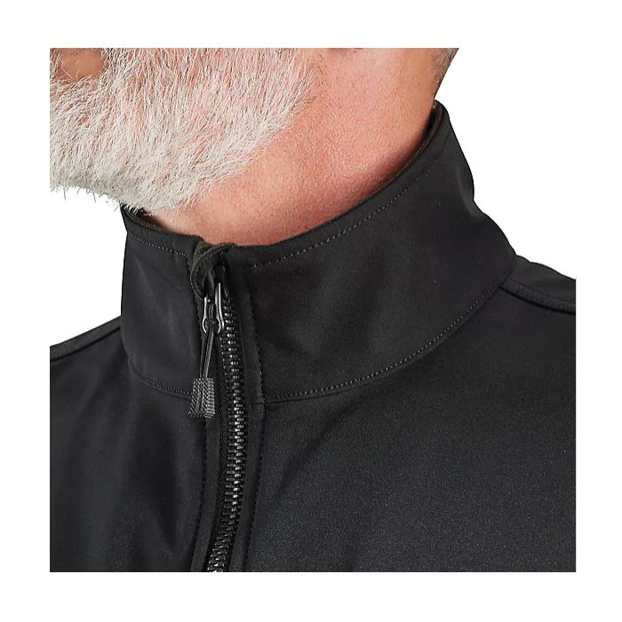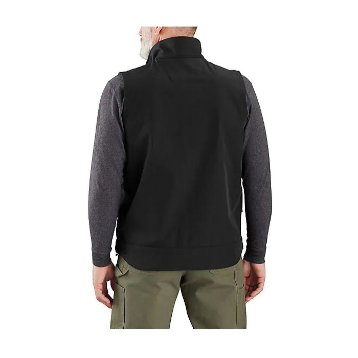 This men's softshell vest is designed to tackle the elements. Work outside in comfort with features made to protect you from wind and water. It's longer in back and has a relaxed fit, so you can move freely and focus on the task at hand.