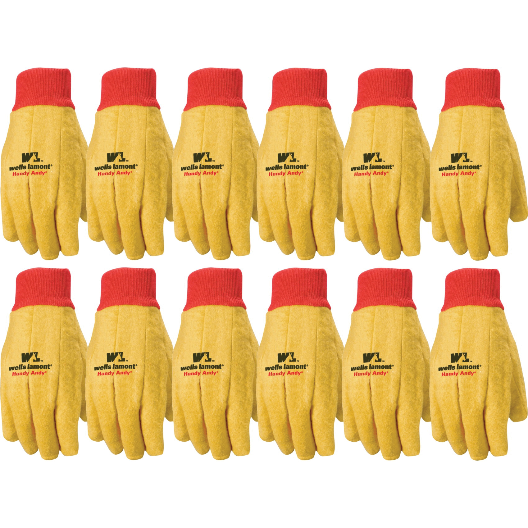 Wells Lamont Handy Andy 412 Gloves, 12 PK, Men's, L, Clute-Cut Pattern, Straight Thumb, Knit Wrist Cuff