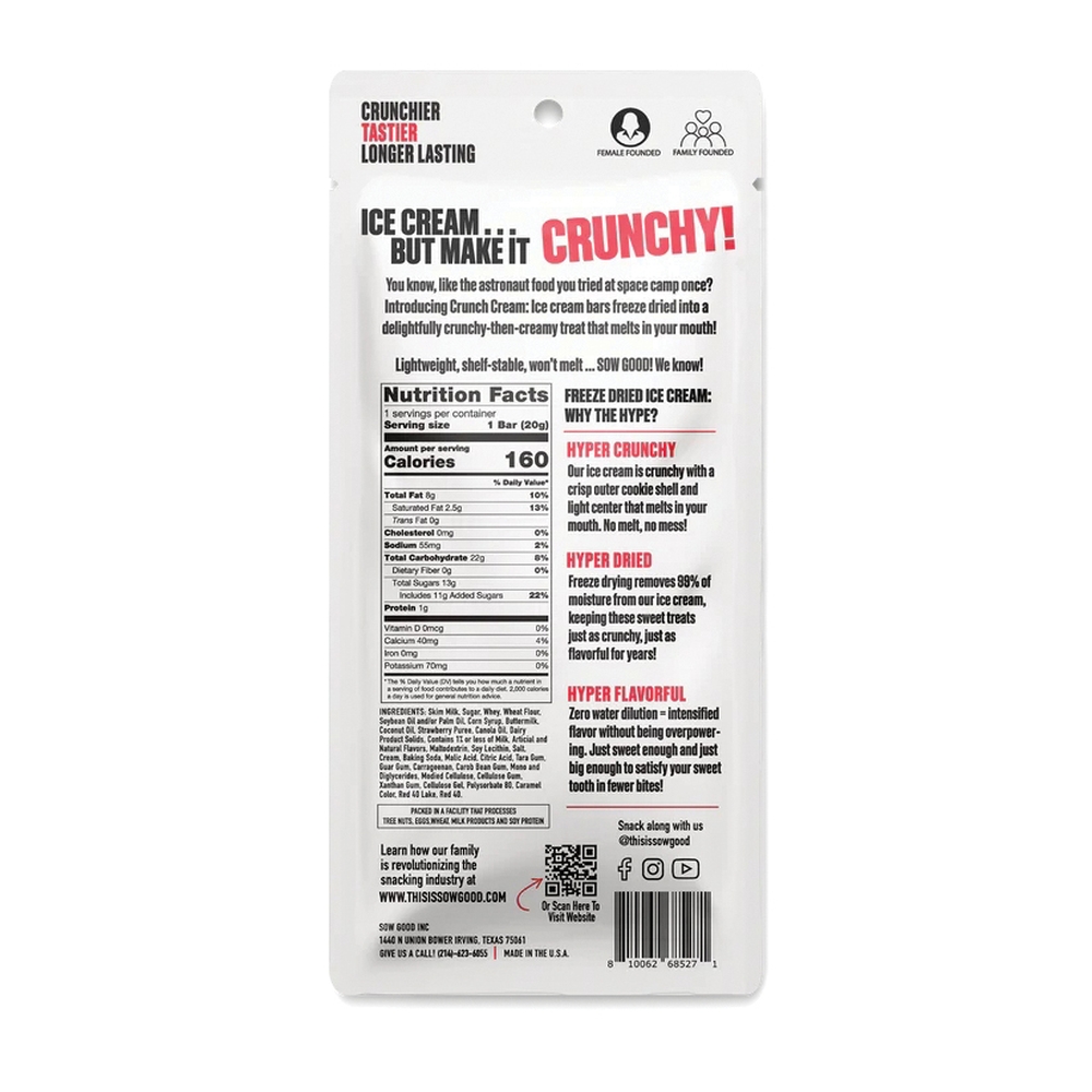 • Sow Good 5271 Freeze Dried Berry Crunch Ice Cream, Bar, Strawberry, 0.7 oz