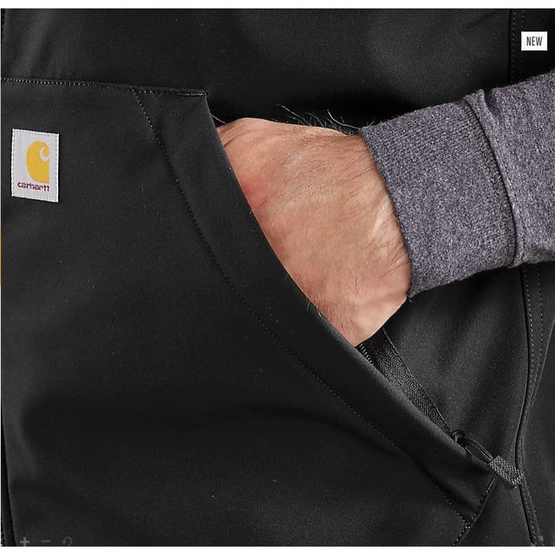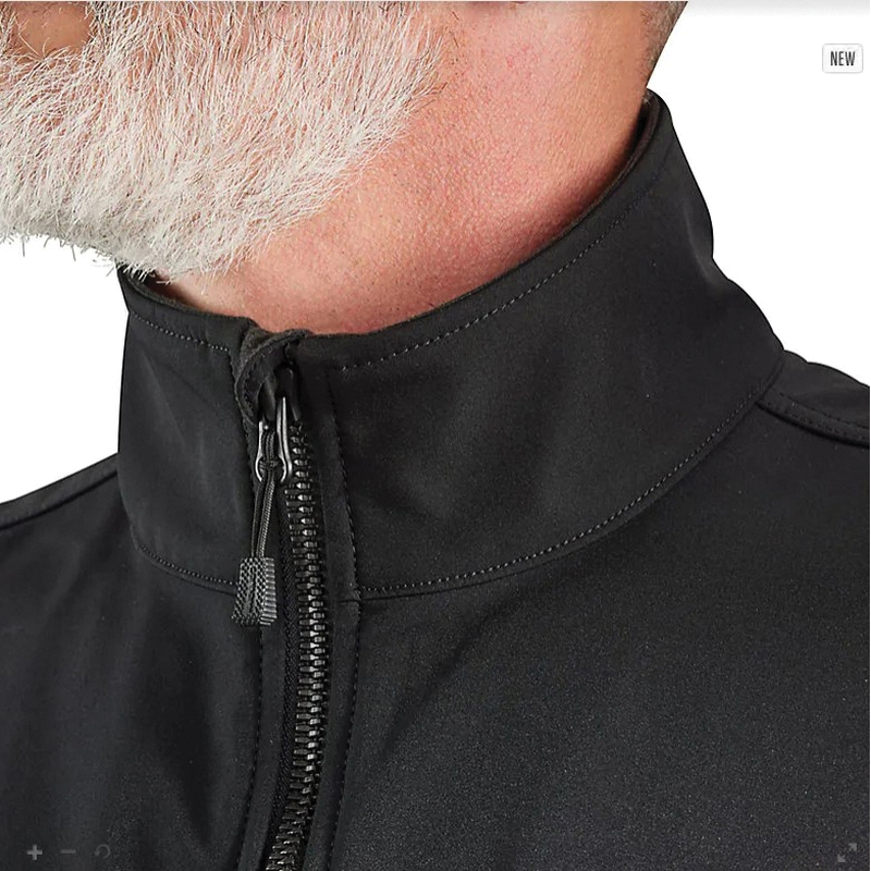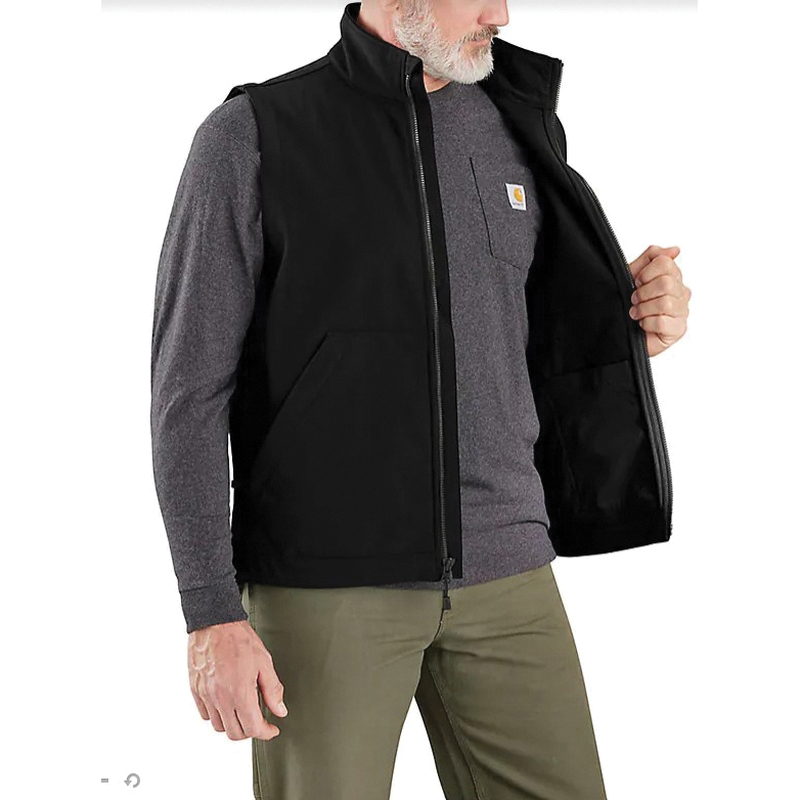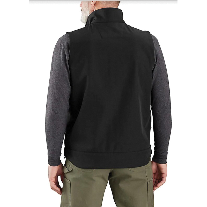 This men's softshell vest is designed to tackle the elements. Work outside in comfort with features made to protect you from wind and water. It's longer in back and has a relaxed fit, so you can move freely and focus on the task at hand.