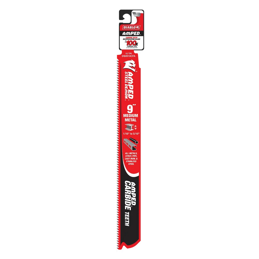 Diablo Steel Demon AMPED Series DS0910CFA Reciprocating Saw Blade, 1 in W, 9 in L, 10 TPI, Carbide Cutting Edge, 1/PK