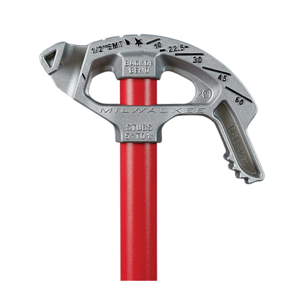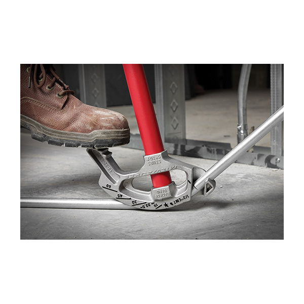 Our 1/2 in aluminum conduit bender features high contrast markings for the better visibility allowing you to easily and accurately make bends. A reinforced hook and pedal and lightweight aluminum shoe provide you with added durability while a secure double bolted handle wont loosen after repeated use. The conduit pipe bender shoe features the most bending references as well as a wear-resistant reference chart for easier use. Offset multipliers are featured on the shoe while 30, 45 and 60 deg center of saddle bend notches and a back of 90 deg bend indicator allow you to easily and accurately bend conduit.