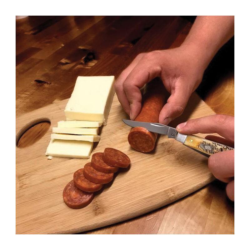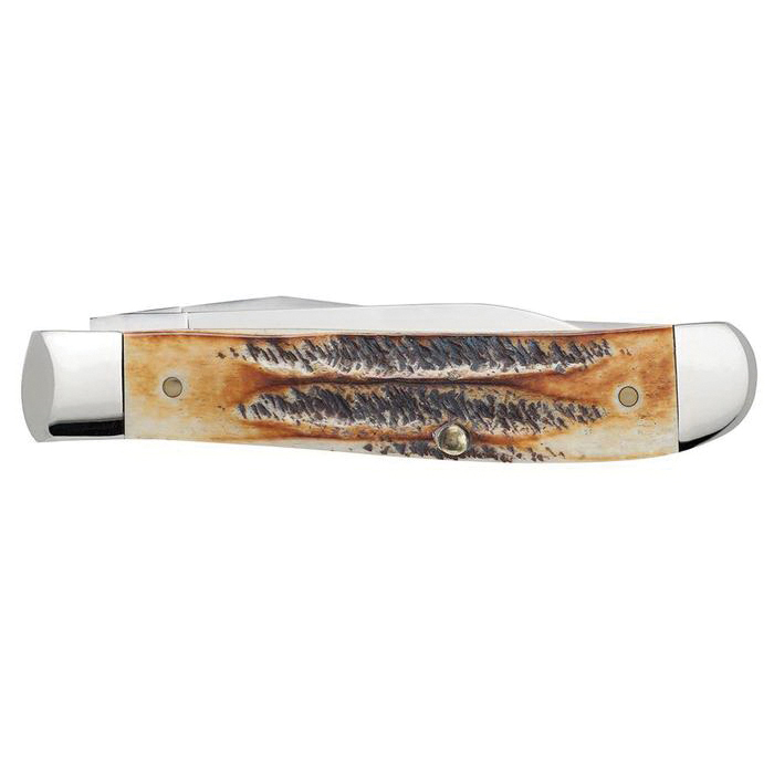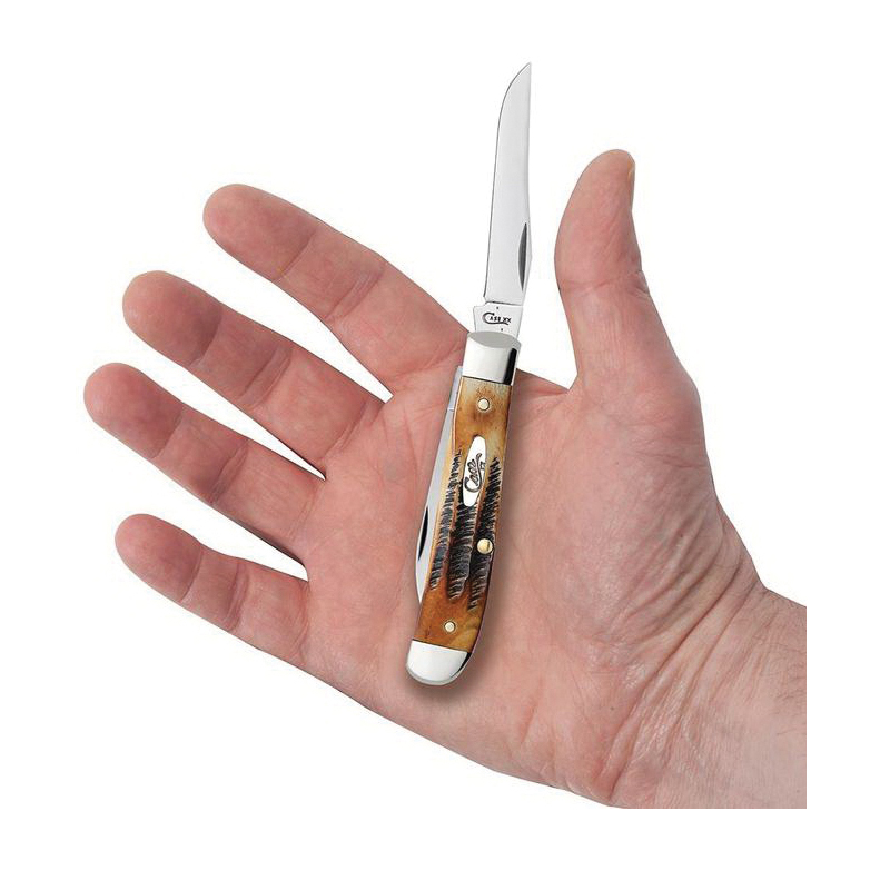 This mini trapper is a part of the case 6.5 bonestag family. Made to look beautifully worn, this genuine bone handle's honey and amber tones are accented with special jigging- and hand flamed- to look and feel like authentic stag antler. Secondary 6.5 in blade tang stampings remind you these knives are extra special. Mini trappers are a smaller version of our trapper carrying two full length blades, the clip blade and the wharncliffe blade. The clip blade is commonly used as a multi-purpose blade and preferred for detail work while the wharncliffe blade makes for an excellent general-purpose utility blade. This blade is also great for cutting and has a finer edge/point for increased control. This knife is constructed with case Tru-Sharp™ stainless steel which is a special high-carbon steel that helps the blades hold an edge longer than conventional steel. It also offers extraordinary blade strength and corrosion-resistance. Comes conveniently packaged in a box. Made in Bradford, PA, USA from domestic and imported materials.