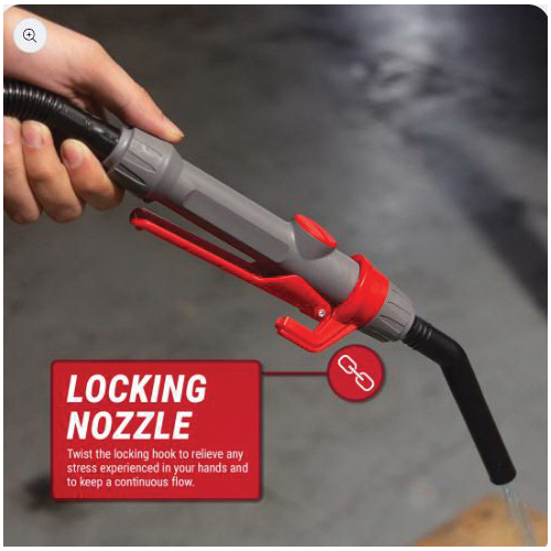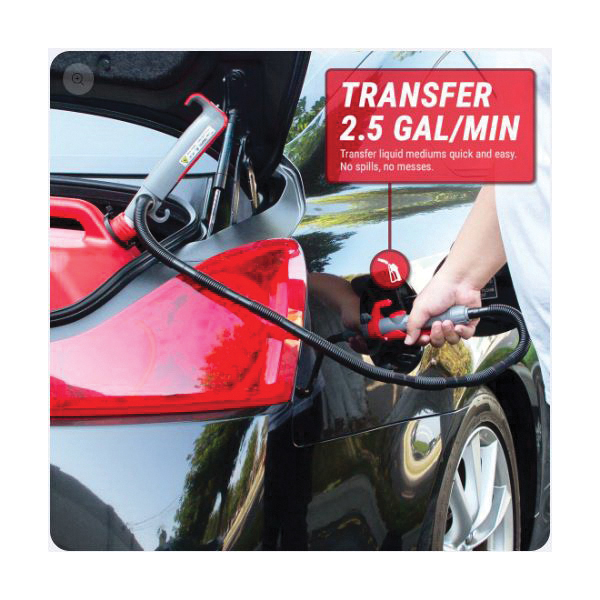 Tera Pump Fuel Transfer Pump, 2.5 gpm, Outlet Connection Size: 1.2 in, Designated Fluid: Agricultural Chemicals, Anti-Freeze, E15, E85, Diesel, DEF, Gasoline, Kerosene, Light Oils, Mild Detergents, Non-Potable Water, Windshield Washer Fluid, Nozzle Type: Swivel, Suction Tube Length: 15 in, Suitable for: 3 to 6 gal Gas Cans to 5 gal Pails, Includes: Nozzle and Transfer Pump