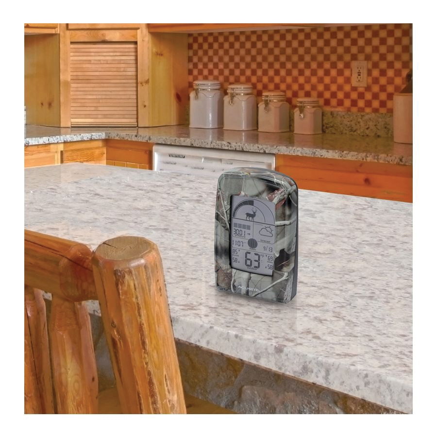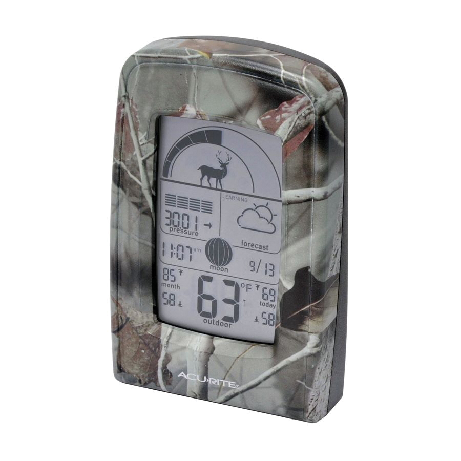 Don't miss out on favorable weather and wildlife conditions. AcuRite's hunting and fishing activity meter predicts wildlife activity levels by combining weather observations with lunar positioning data. AcuRite's patented self-calibrating technology provides your personal forecast of 12 to 24 hr weather conditions. Self-calibrating forecasting is generated from weather data measured by a sensor you place outside - giving you the most accurate forecast available for your exact location. The bold, easy to read LCD screen also includes outdoor temperature with daily and monthly high/low information, barometric pressure history, moon phase and Intelli-time clock and calendar. Intelli-time clock automatically updates itself for daylight saving time. Display stands upright for tabletop use or is wall-mountable.