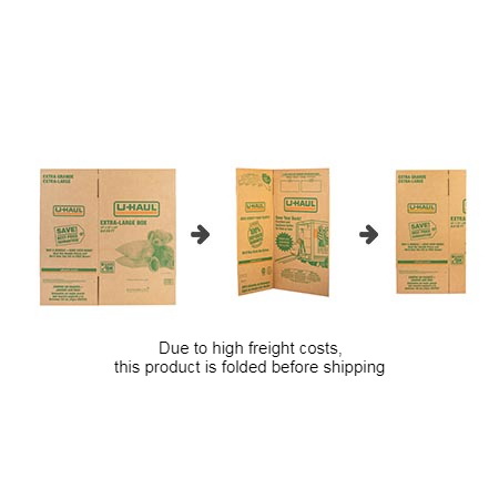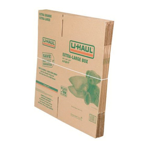 Our extra-large moving box is ideal for moving, shipping or storing very large lightweight, bulky items. These large household items include comforters, large pillows, towels, seasonal bulky clothing and more. This box is recyclable and can hold up to 65 lb worth of items.