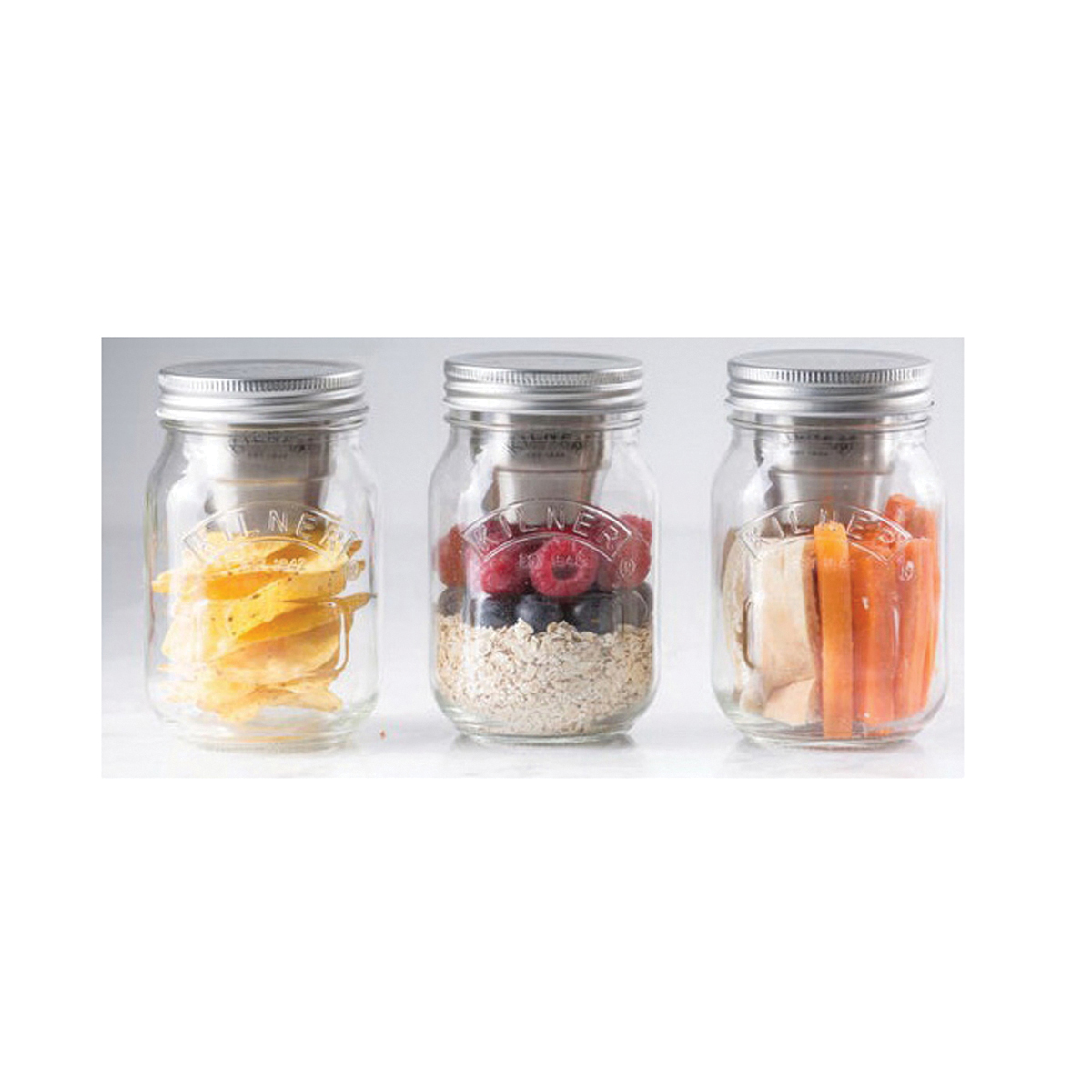 The Kilner® snack on the go jar set is the healthy way to store and transport lunch, snacks and treats. Ideal for storing salad, fruit, breakfast grains or dry snacks. The removable cup is made from high grade stainless steel keeping dressings and dips separate from crisp, dry foods that are contained in the jar. The glass jar has a capacity of 0.5 L great for a single portion of fruit or overnight oats. The set comes with a one-piece screw top lid to keep all the contents fresher for longer.