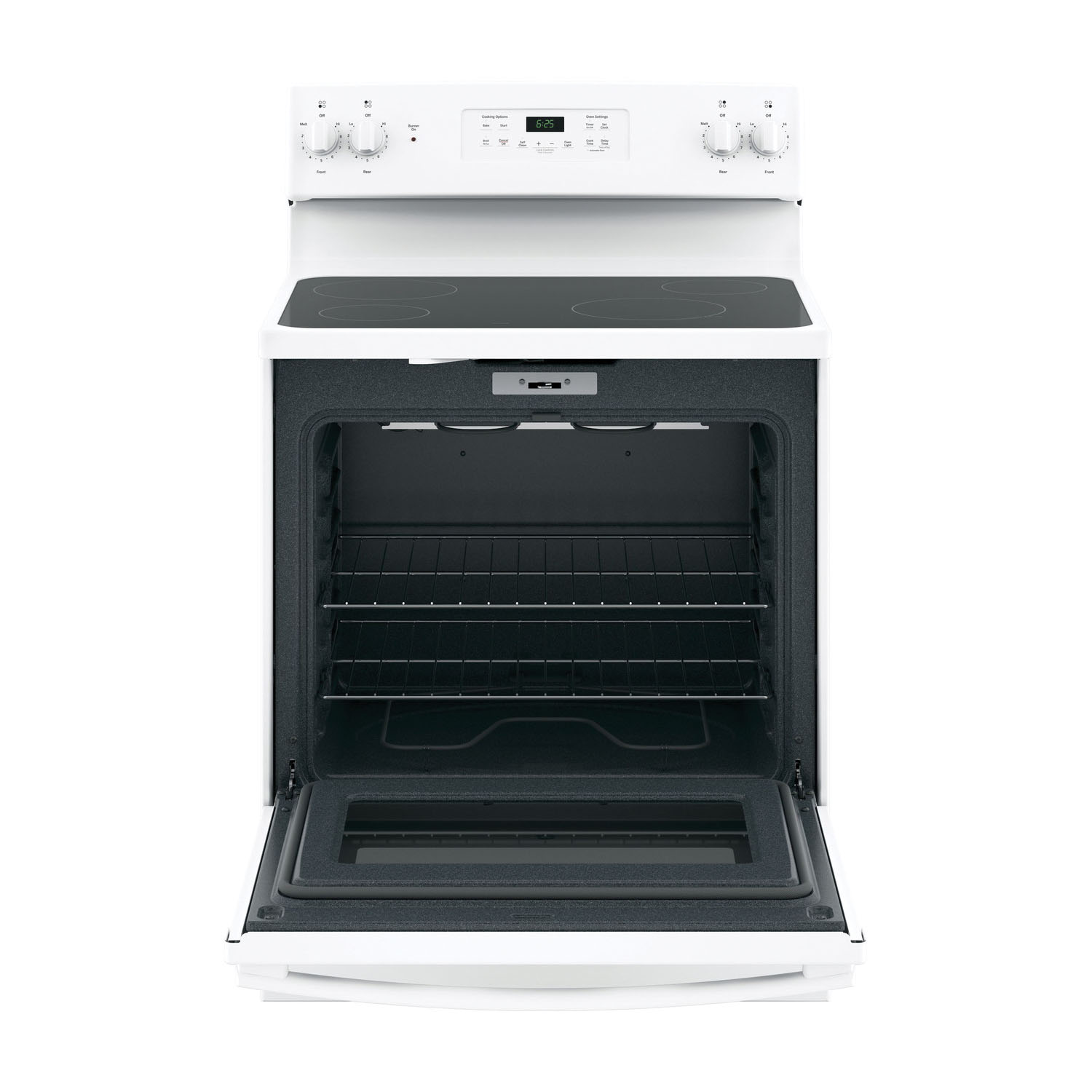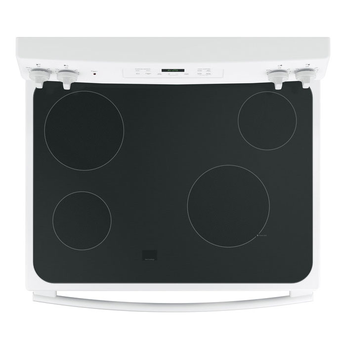 GE Electric Range, 208/240 V, 40 A, 3410 W Wattage, Oven Capacity: 5.3 cu-ft, 4 Burners, Radiant, Smooth Top Burner, Cooking Surface Height: 35-3/4 to 36-1/2 in, Oven Interior Width: 24-1/8 in, Oven Interior Depth: 19-3/8 in, Oven Interior Height: 19-1/2 in, Touch Pad Control, Number of Ovens: 1, Glass Door, 2 Racks, Free-Standing Installation, 29-7/8 in Overall Width, 28 in Overall Depth, 47 in Overall Height, White
