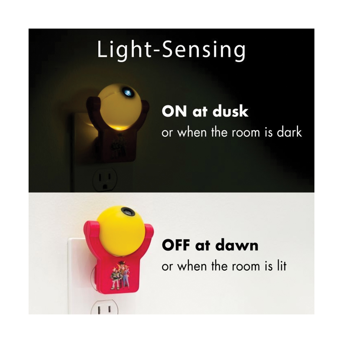 Sheriff Woody, Buzz Lightyear, Bo Peep and the group are back again for another adventure and there is no better way to celebrate their return than with the Toy Story 4 Projectables night light. Great for a child's room, the globe emits a soft yellow glow while projecting a collage of characters from the movie, including newest addition Forky, onto the wall or ceiling. The long-life LEDs are cool to the touch, energy-efficient and light sensing, so you never have to be burdened with replacing a bulb. The night light can also work as a soothing guide light for a dim room or hallway, providing enough light to move about safely without disrupting sleep. And there's no need to unplug the night light during the day, light sensing technology means the light is on at dusk and off at dawn. Let your favorite characters light up the room light up the room with the plug-in Toy Story 4 Projectables night light.