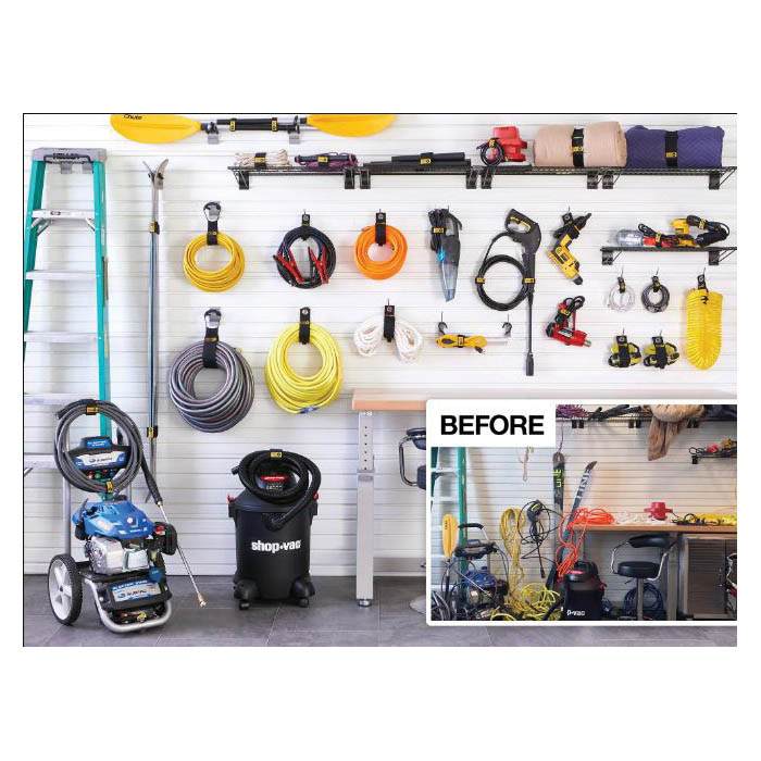 Heavy-Duty Wrap-It storage straps are tough. Made with heavy-duty polypropylene, industrial strength hook and loop and a rust-resistant grommet these are built to last indoors or outdoors. Organize, hang and store cords, hoses, rope and so much more. Great to get organized around the house or in the garage, shop, shed, RV, boat or truck.