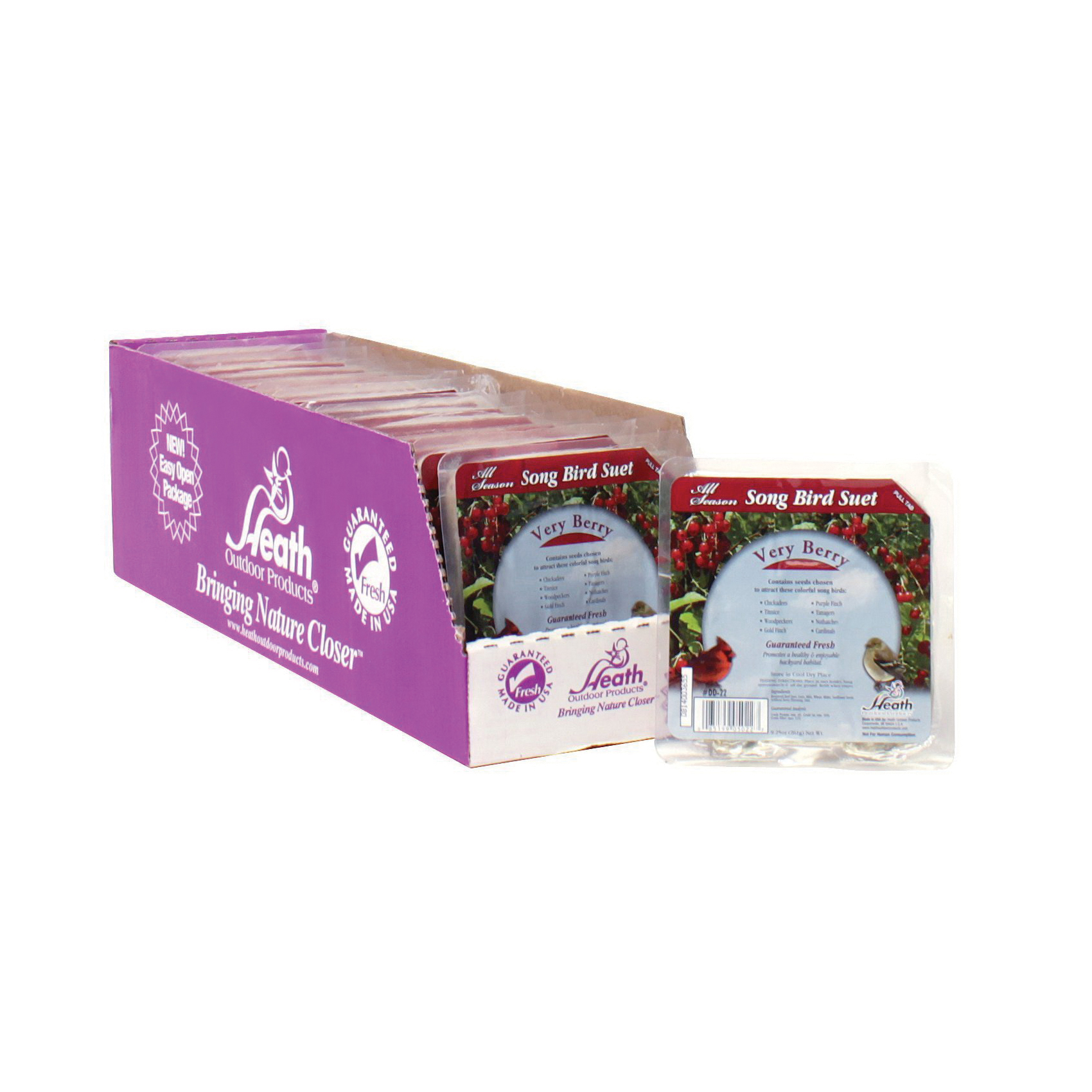 Blended with suet, seed and natural berry flavoring. Attracts these colorful songbirds like cardinals, chickadees, goldfinches, juncos, kinglets, nuthatches, purple finches, siskins, tanagers, thrushes, titmice, warblers, woodpeckers and wrens.