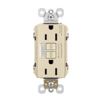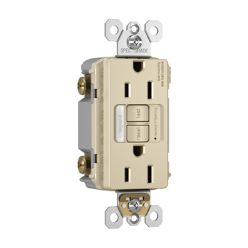 • Pass & Seymour radiant 1597NTLTRLACCD GFCI Outlet, 125 V, 15 A, NEMA: NEMA 5-15R, Back and Side Wiring