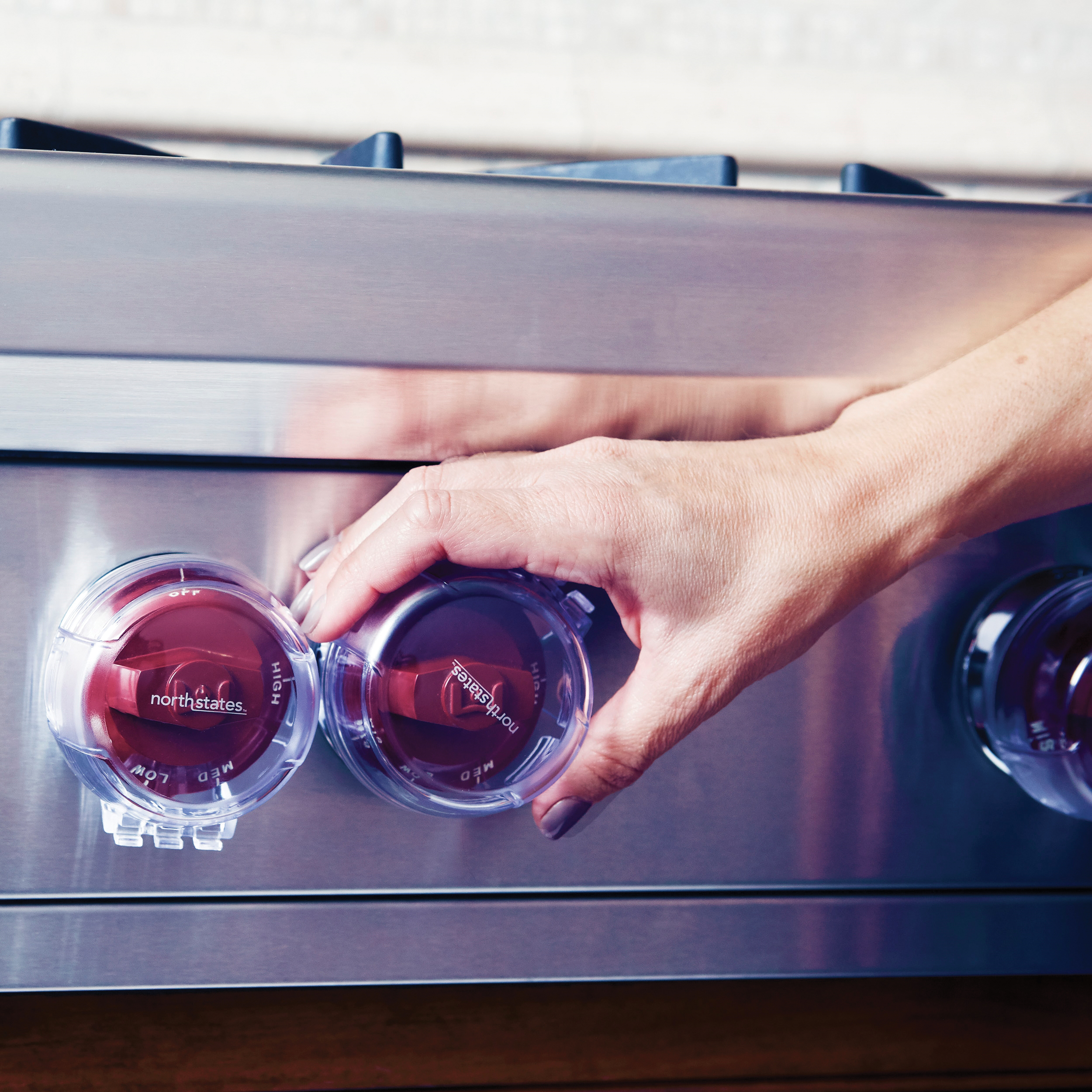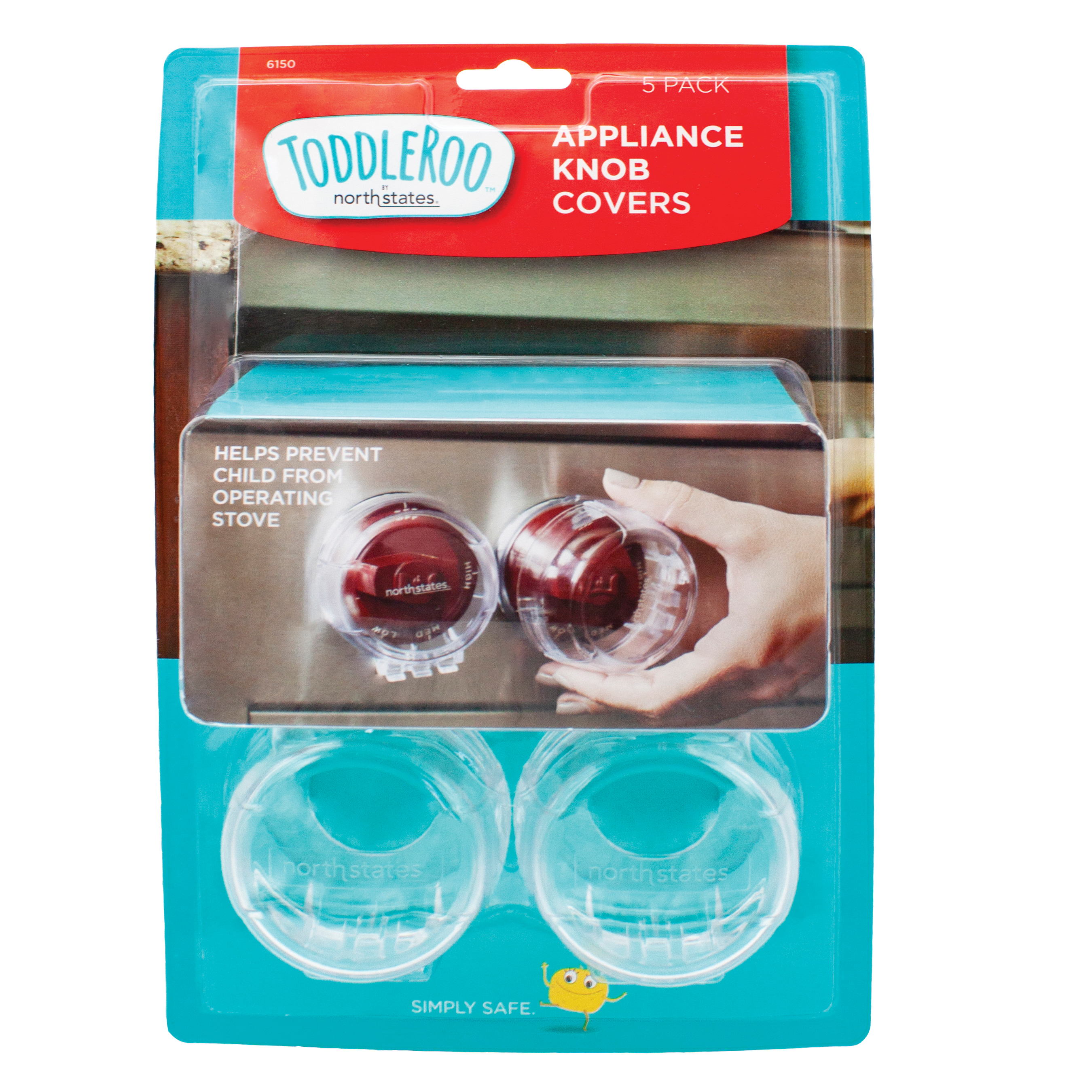 Mommy's little helper loves to help in the kitchen and knobs look fascinating. Help prevent your child from operating the stove with the Toddleroo by North States® Appliance Knob Covers. The hinged cover allows for easy adult access, while keeping knobs off limits to little hands. Fits on most front-facing stove knobs and comes in a pack of five. They are durable and heat-resistant. For a simple solution to your tot's curiosity, attach the Appliance Knob Covers in just minutes with no tools needed. It's a breeze to remove and wash them up if they get dirty. The ultra-clear design stylishly blends with any kitchen decor.