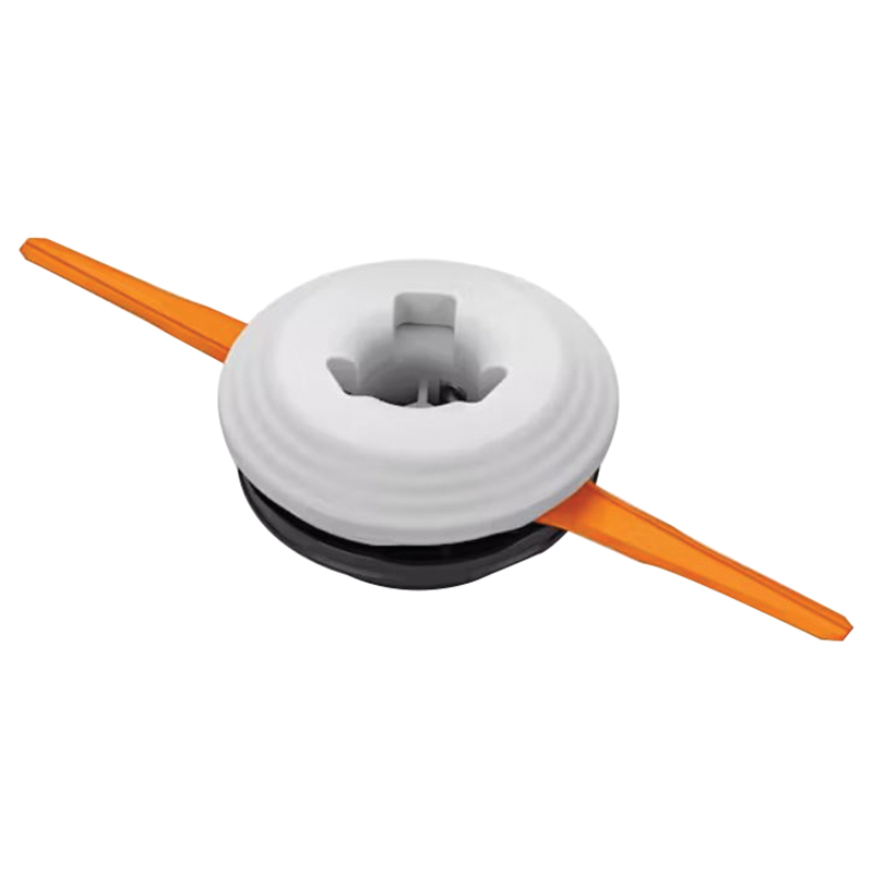 This is a multi-purpose cutting tool with three thermoplastic blades that are ideal for hard to reach places and large areas of high-growing grass. The blades are mounted on bushings and extend when the engine is brought up to operating speed. The white thermoplastic blades are also ideal for trimming around monuments and other solid objects as they don't mark the stone. The blades are easy to change and some models can also be fitted with flexible nylon line in addition to or in place of the blades.