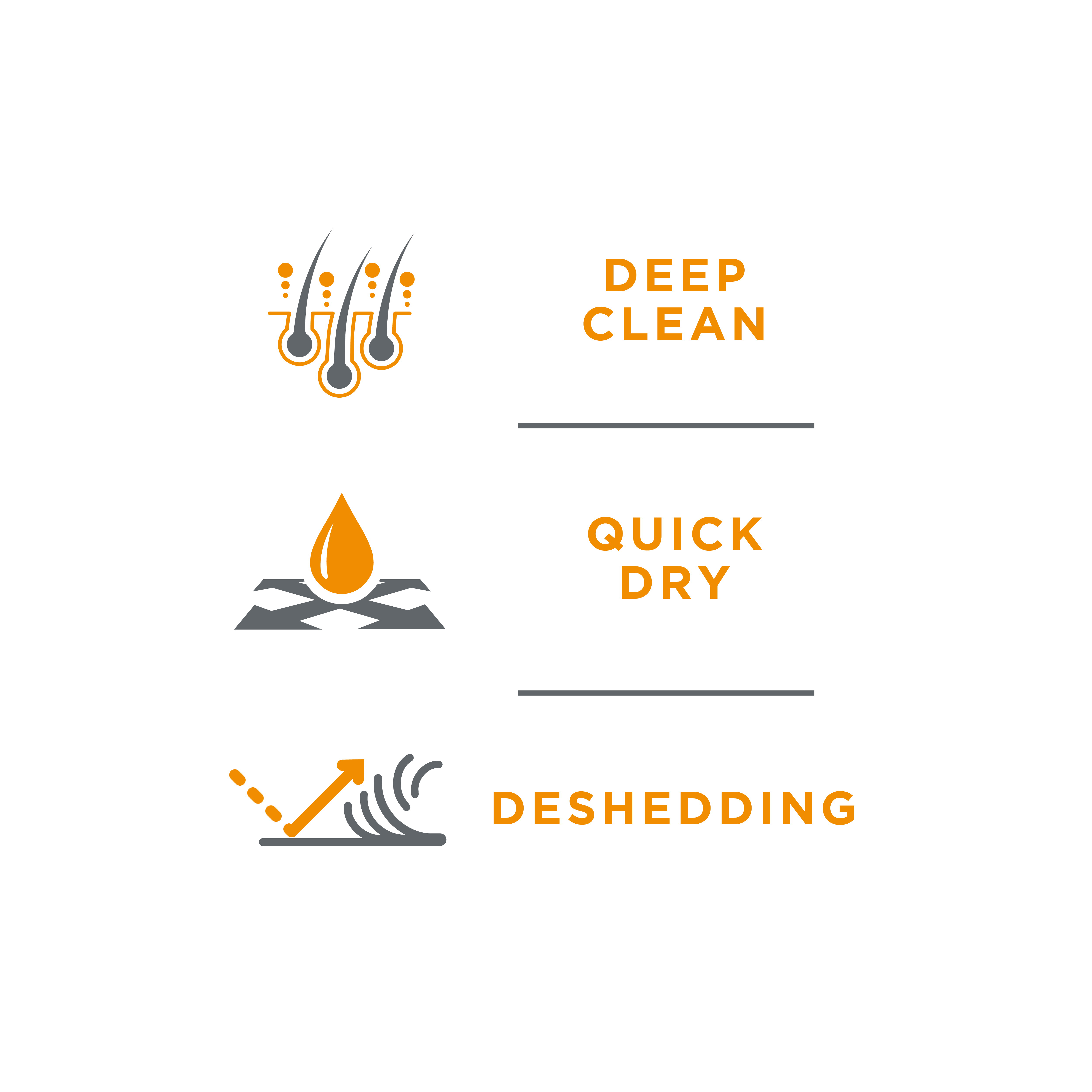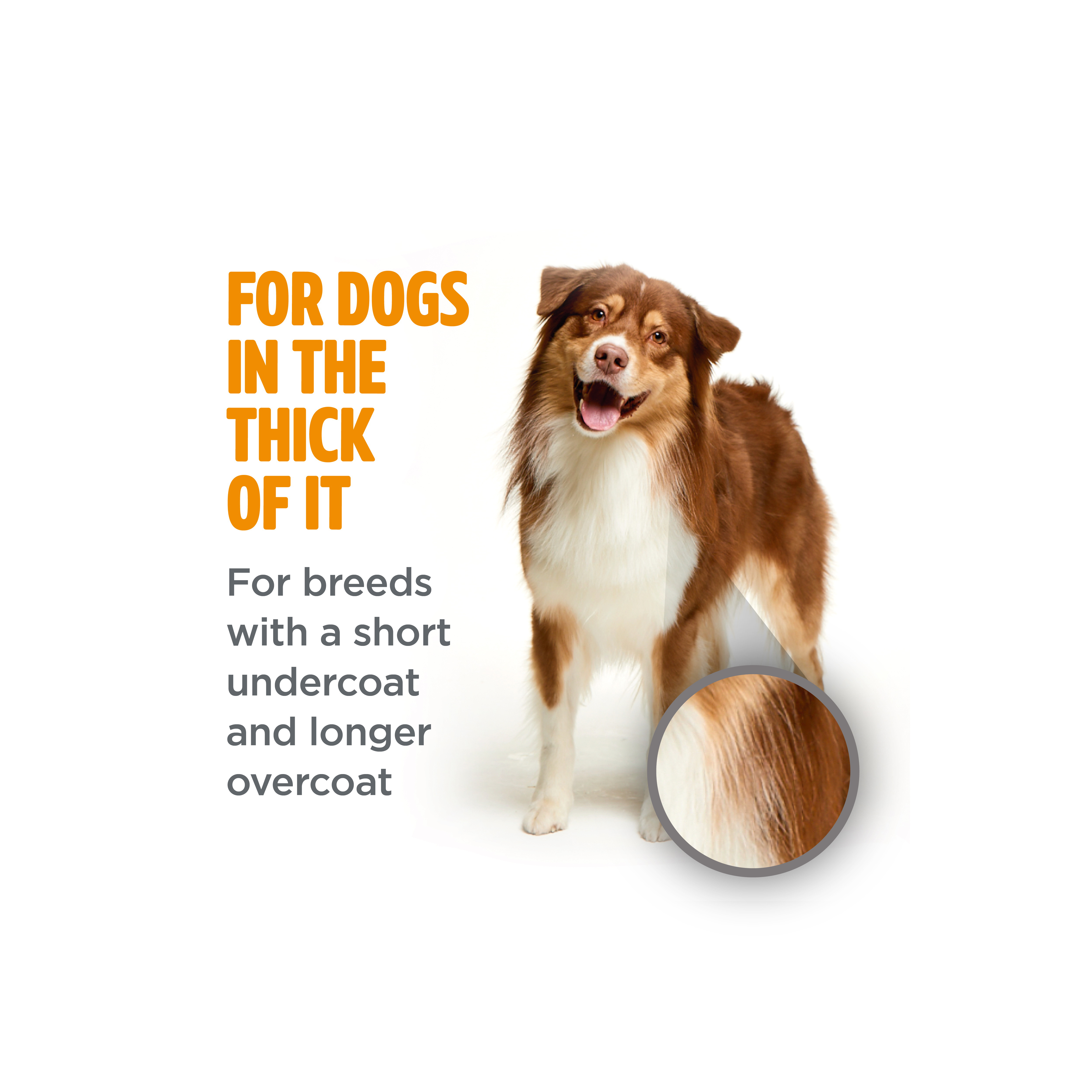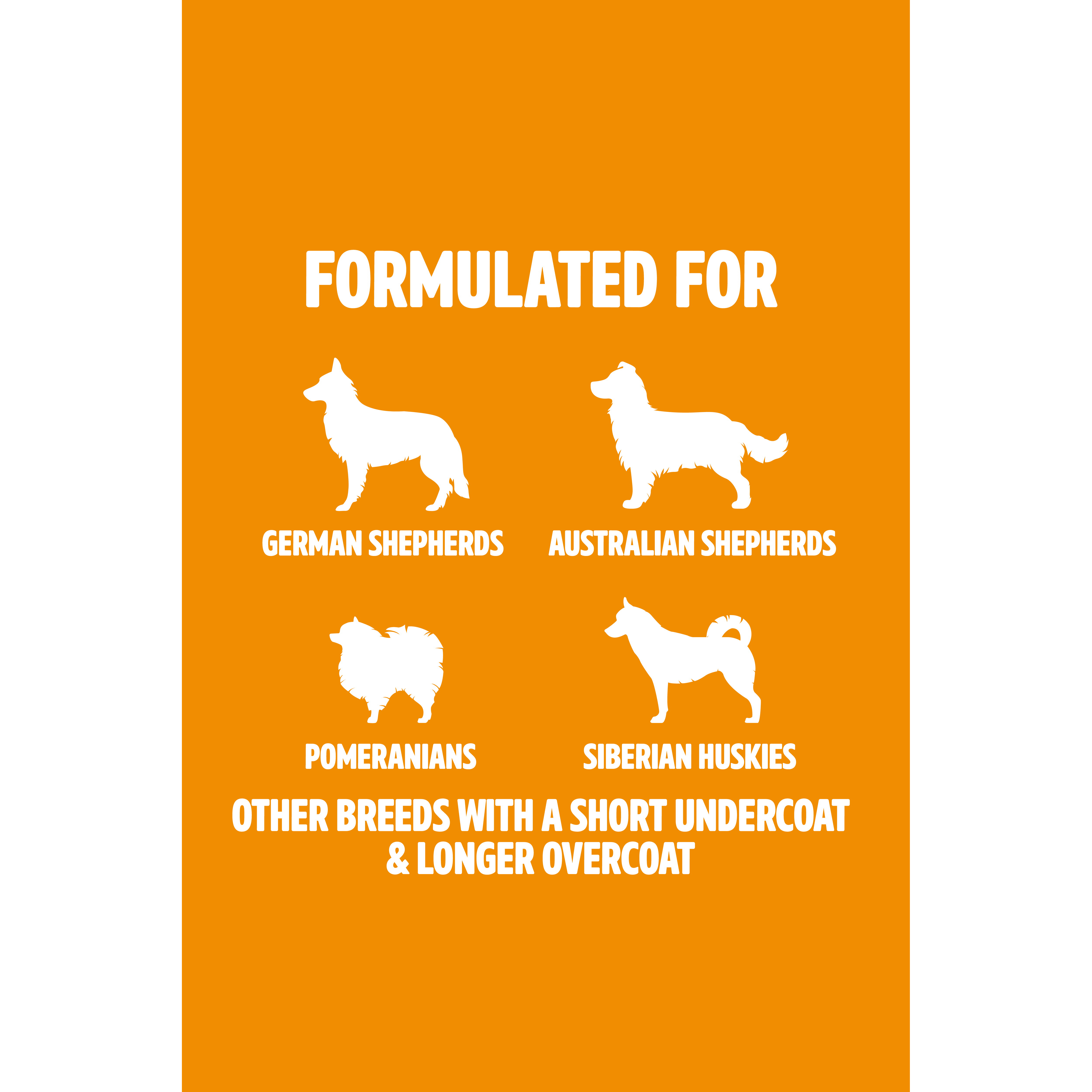 Specially formulated for the double-layered fur of German shepherds, Australian shepherds, Pomeranians, Siberian huskies and other breeds with a short undercoat and longer overcoat.