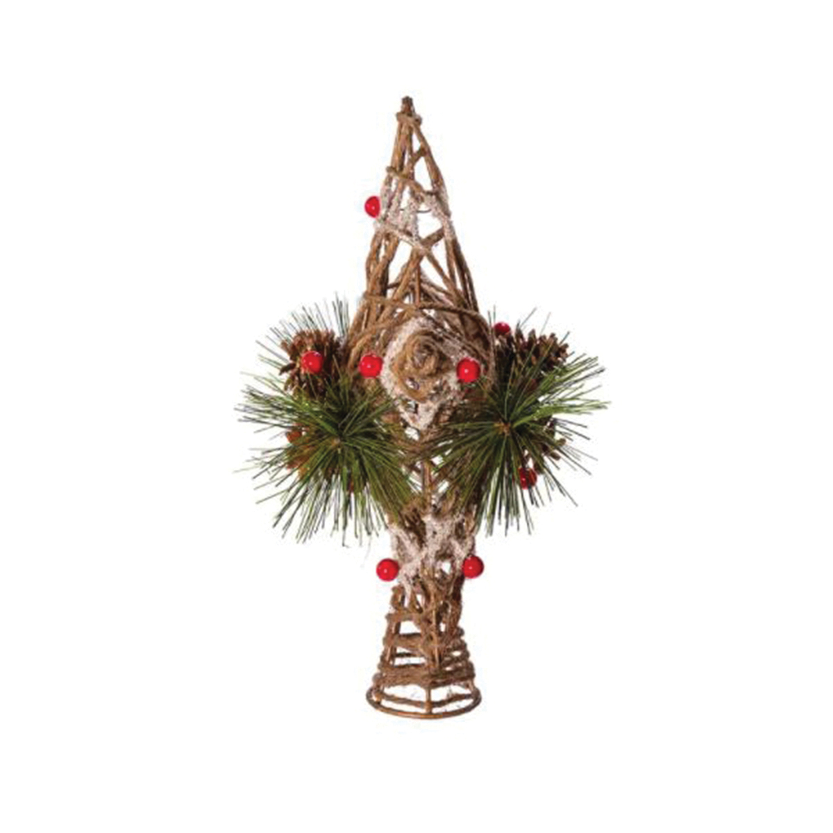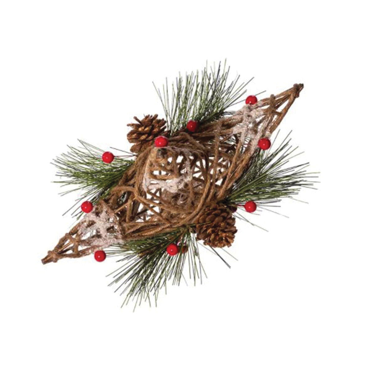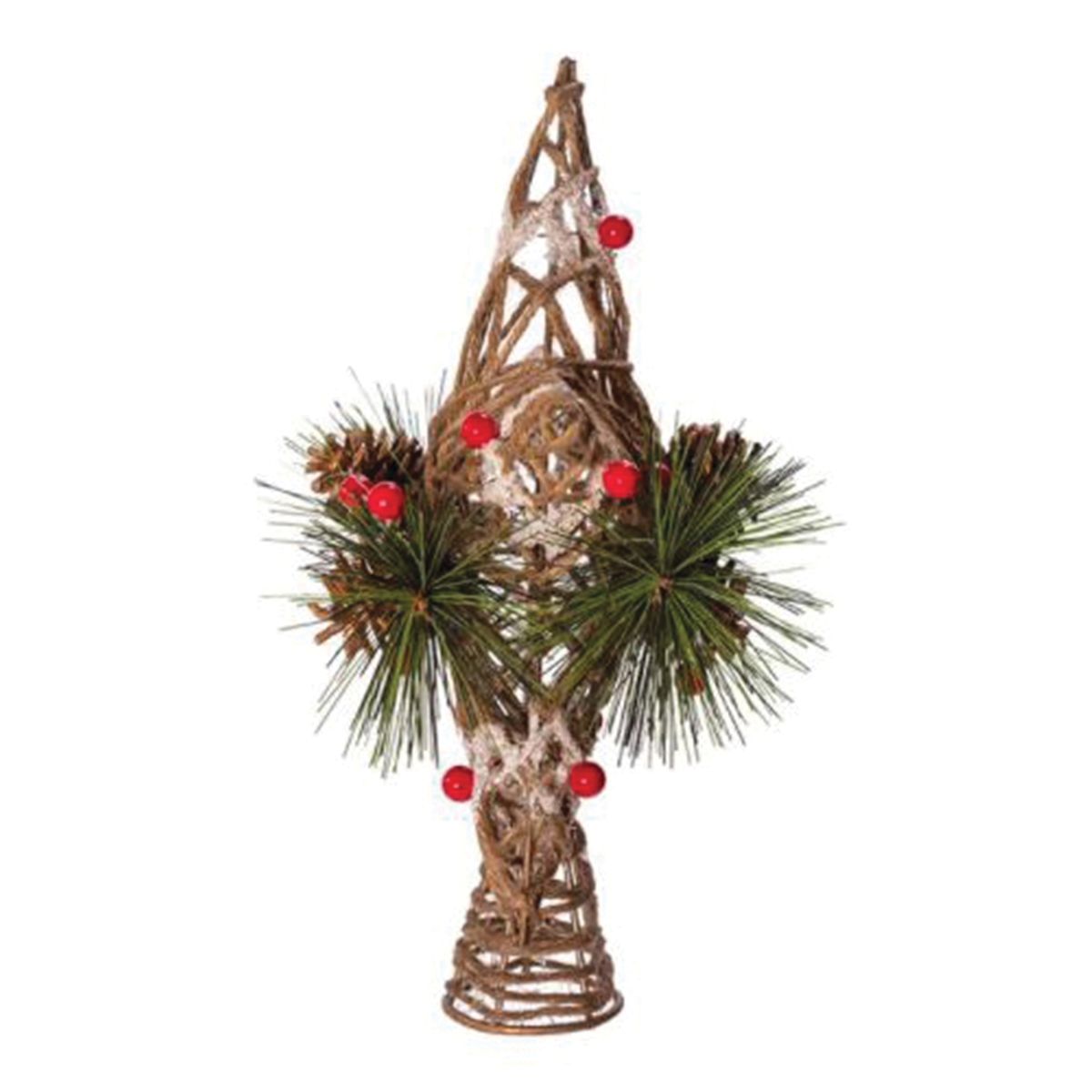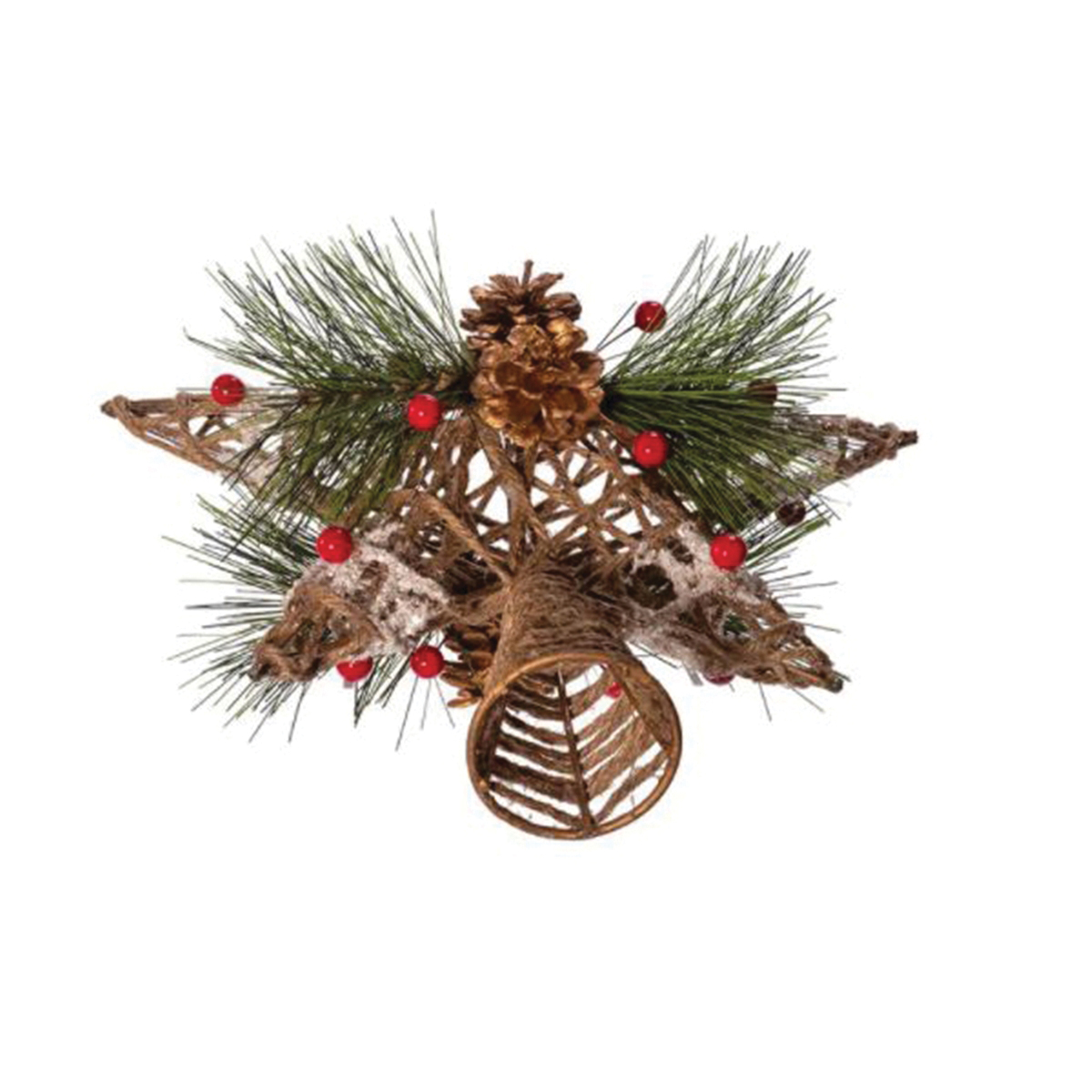Kurt S Adler Tree Top, Natural Star with Pinecones, Iron/Natural Fiber/Plastic, Brown, Indoor Indoor/Outdoor, 11 in Length