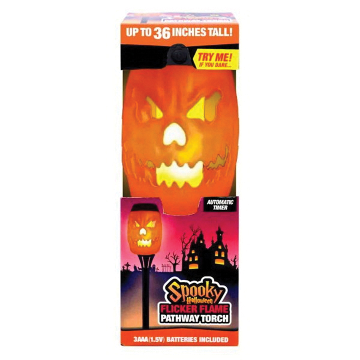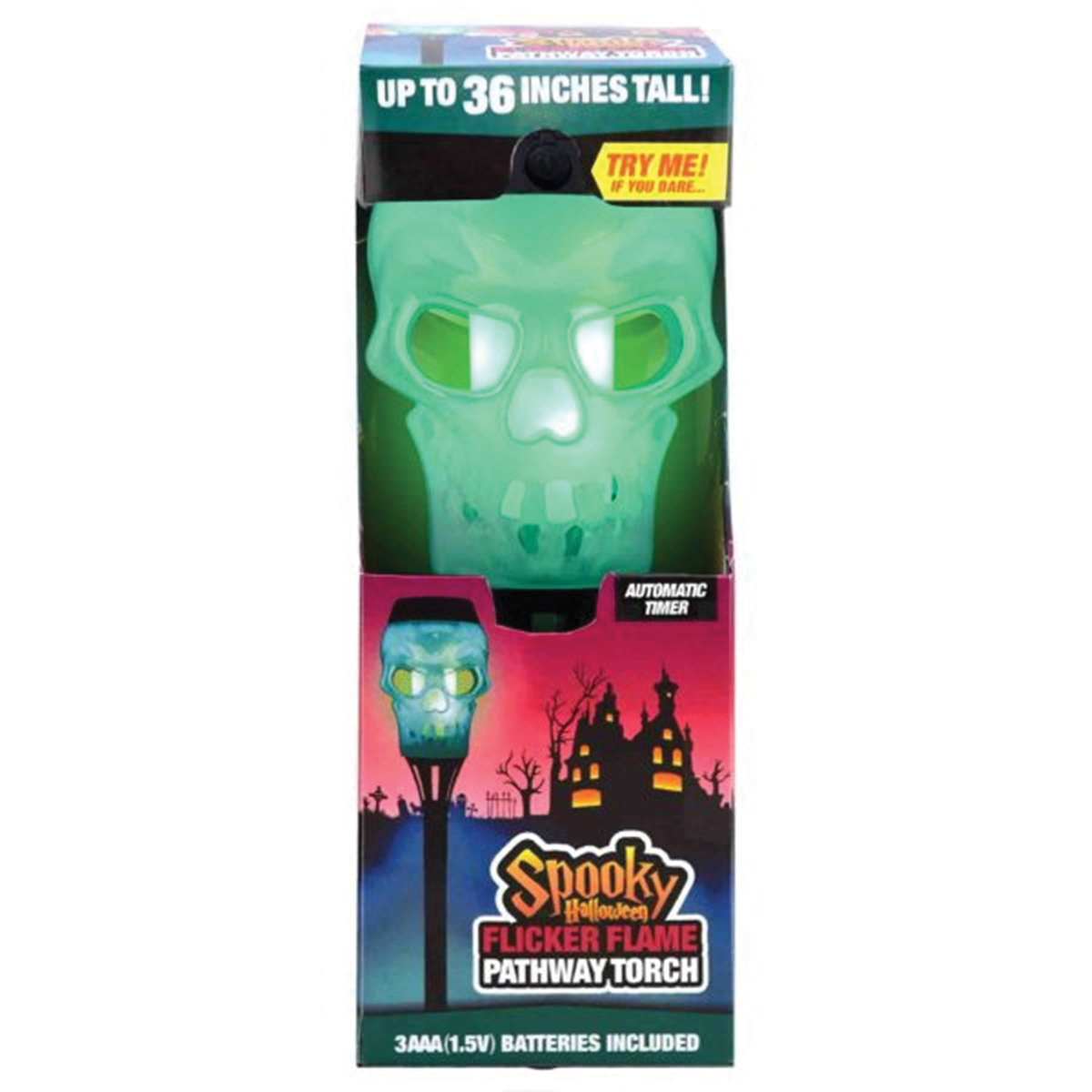 Includes    :    Jack o Lantern, Ghost, Skull Styles Torches, Joint, Stake, (3) AAA Batteries and (2) Poles