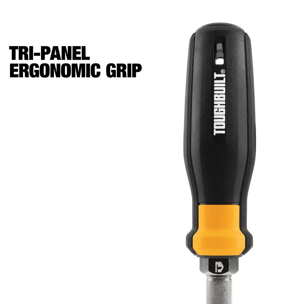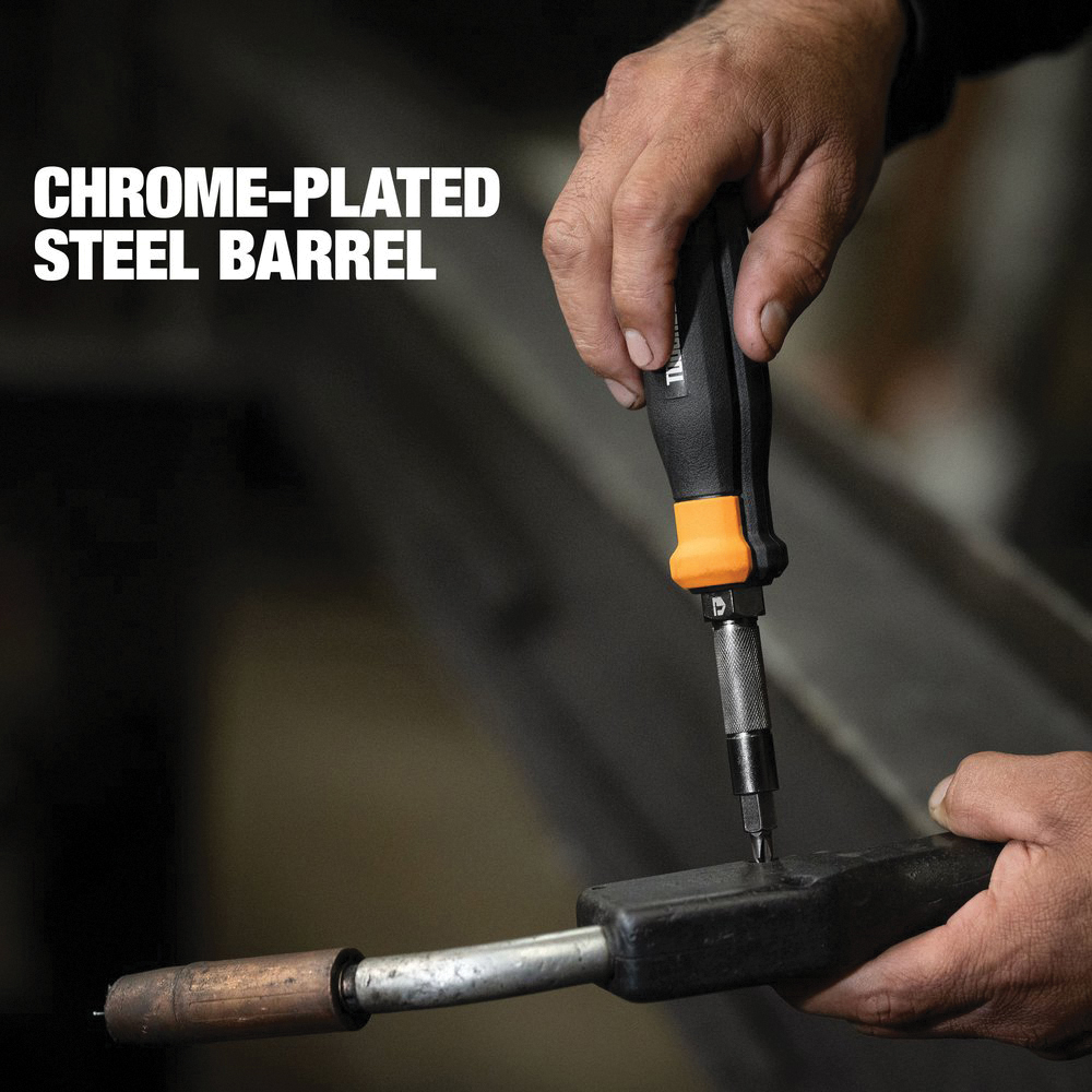 The 12-in-1 multi-bit driver comes with 4 double-ended popular tips and converts to 4 nut driver sizes that are quickly and easily interchangeable thanks to the ball-detent mechanism. Black chrome-plating on the steel barrel prevents rust and ensures longevity. Tri-panel ergonomic rubber handle improves grip control and comfort in the hand. The multi-bit driver gives you faster access to multiple tips and nut drivers.