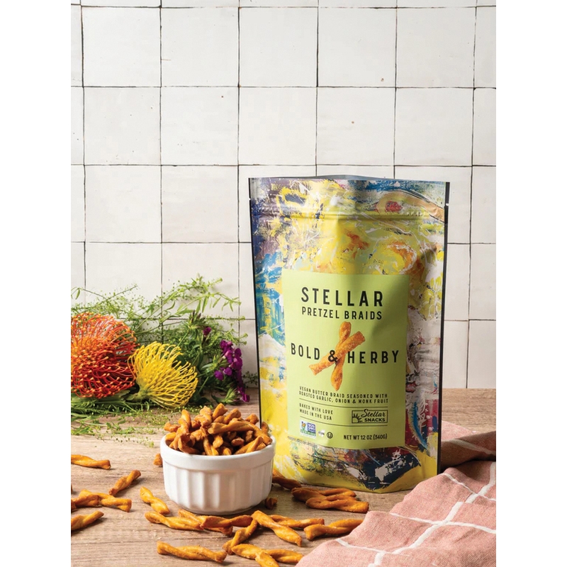 Stellar Snacks 12419 Pretzel Braids, Bold and Herby, 12 oz Resealable Bag