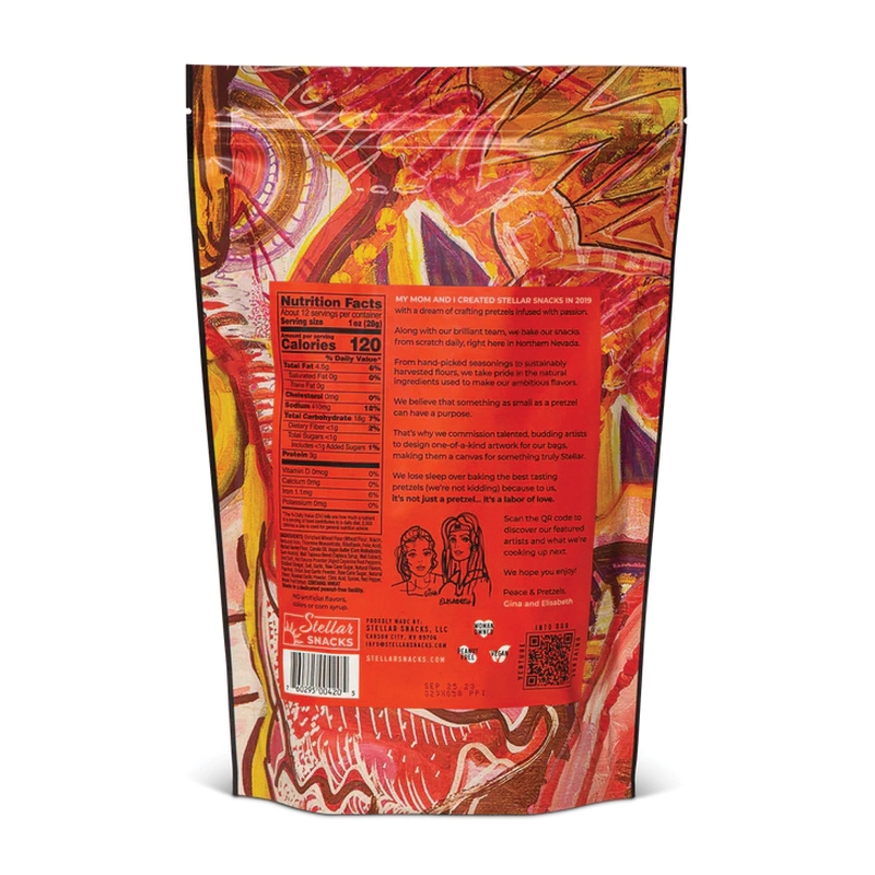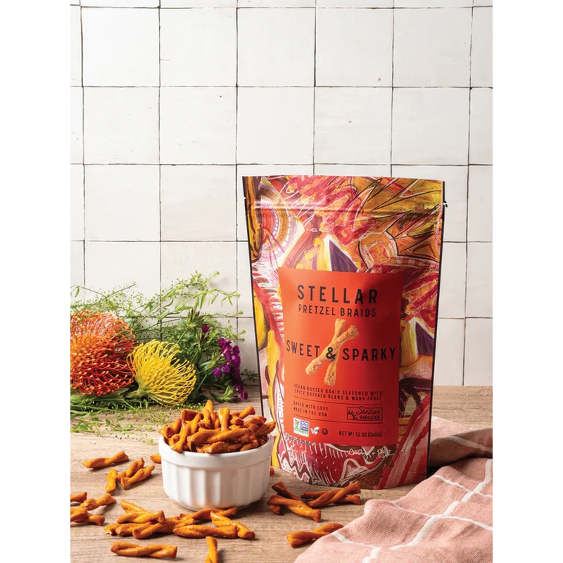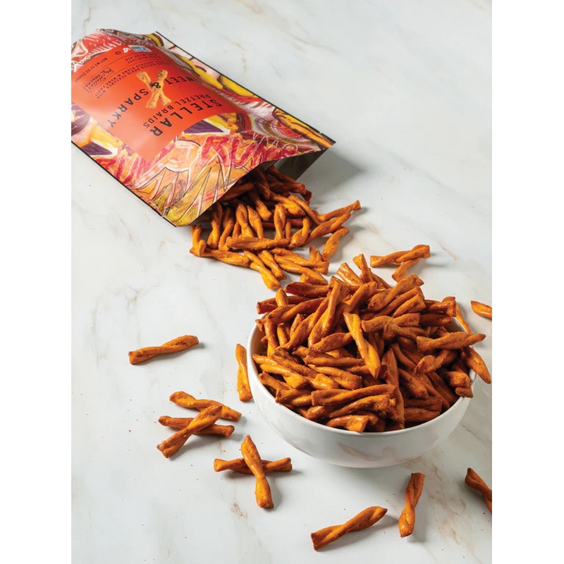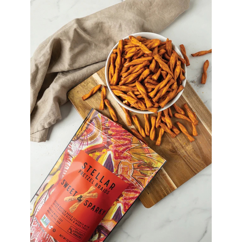 Taste the spark in our signature zesty buffalo seasoning. A delicious flavor combination of sweet and then heat, these vegan pretzel braids pack a punch. Be warned that each crunchy bite will leave you craving more! If you're a fan of spicy snacks, look no further.