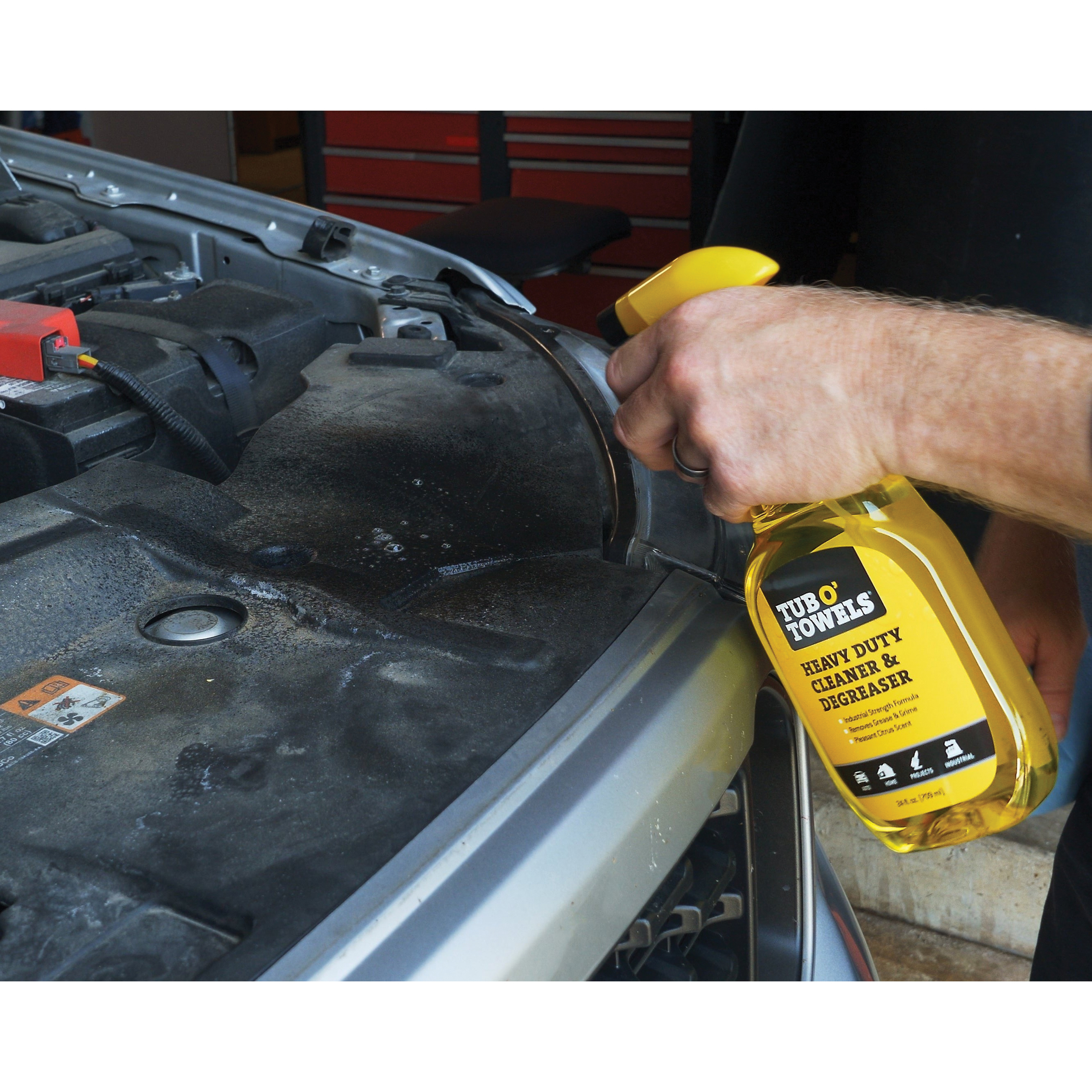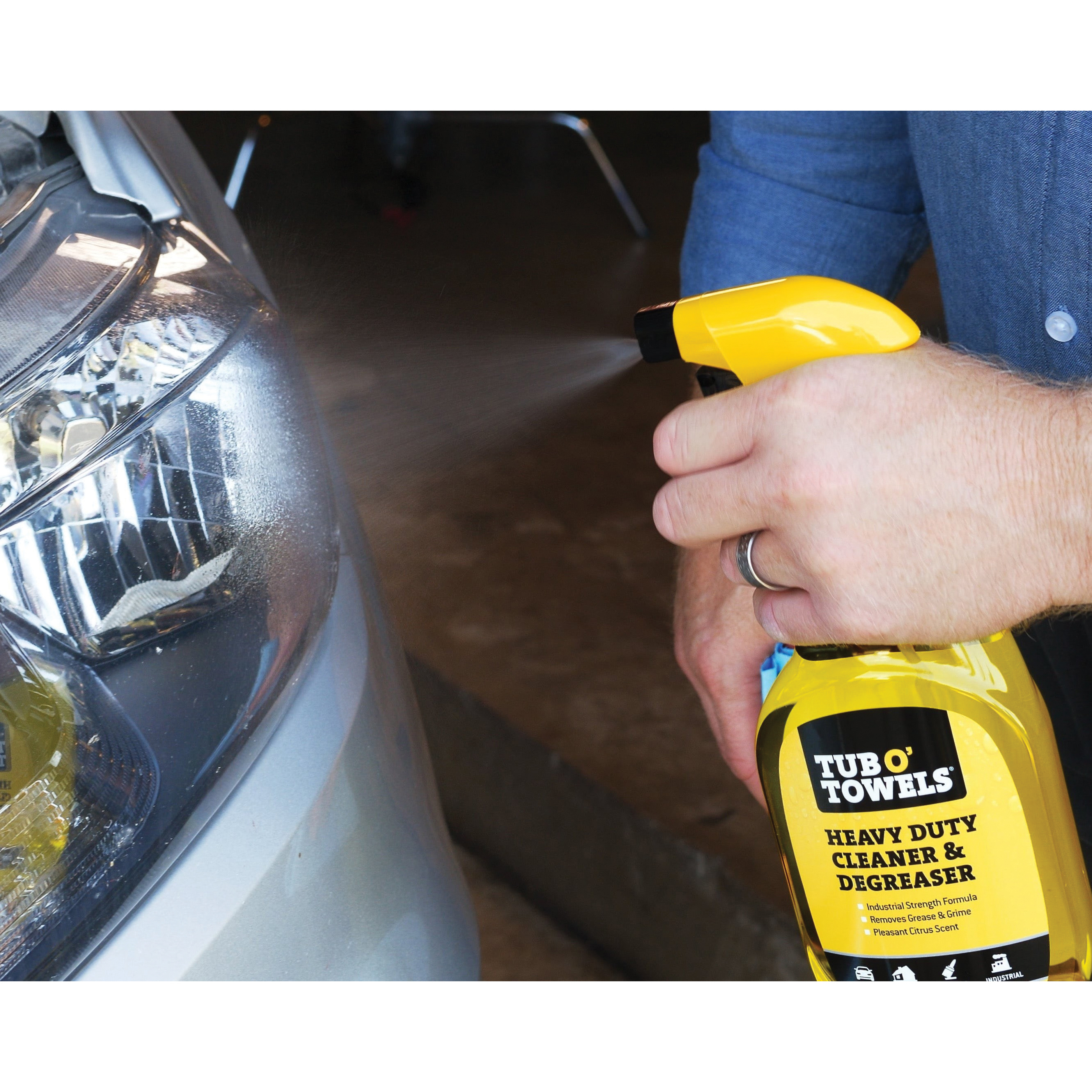 Tub O'Towels heavy-duty cleaner and degreaser spray combines the strength of our famous heavy-duty cleaning wipes with the convenience of a spray bottle. Easily remove heavy-duty messes like oil, tar, paint, caulk, epoxies and more with no harsh chemicals - making cleaning safe for homes with little kids and pets. This powerful cleaner blasts away grease and grime with ease, transforming the toughest cleaning jobs into a simple, stress-free task. Get ready-to tackle any job with Tub O'Towels heavy-duty cleaner and degreaser spray.
